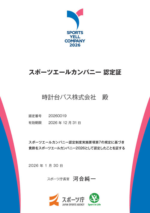 弊社は、スポーツの実施に向けた積極的な取組みを行っている企業として、スポーツ庁より「スポーツエールカンパニー2026」に認定されました。