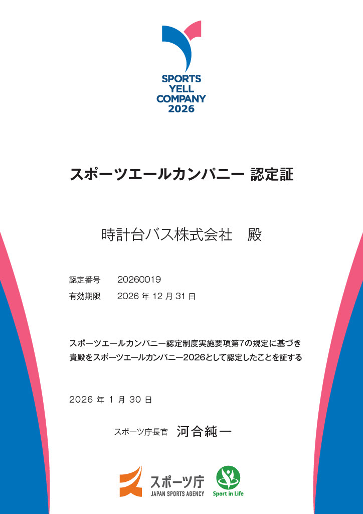 弊社は、社員の健康増進のためにスポーツの実施に向けた積極的な取組を行っている企業として、昨年に引き続き、スポーツ庁より「スポーツエールカンパニー2026」に認定されました。